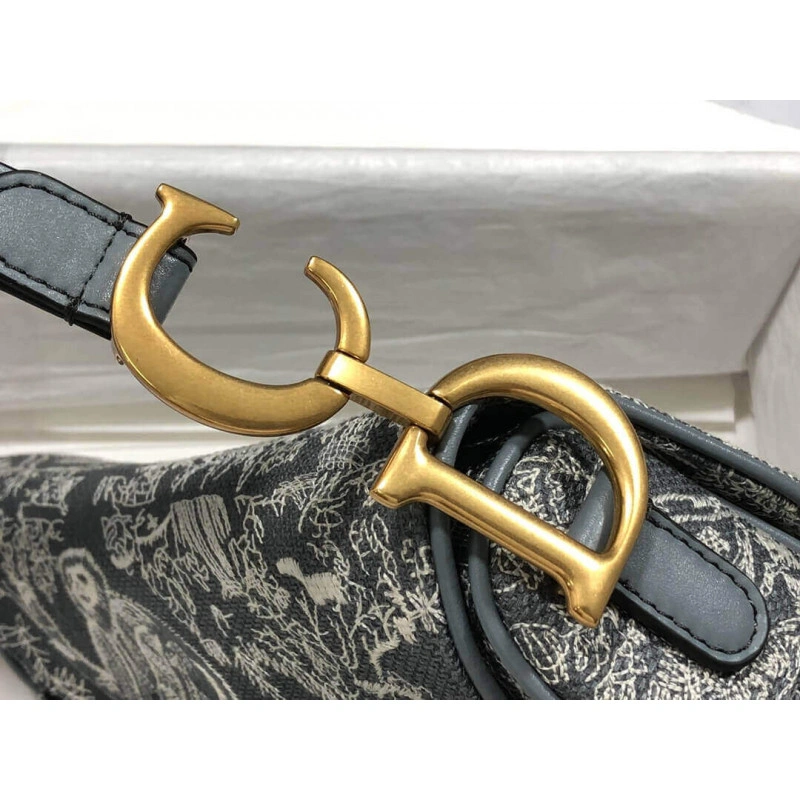 Interior Christian Dior Saddle Bag Grey Toile de Jouy Reverse Jacquard,FAST SHIPPING & Affordable!